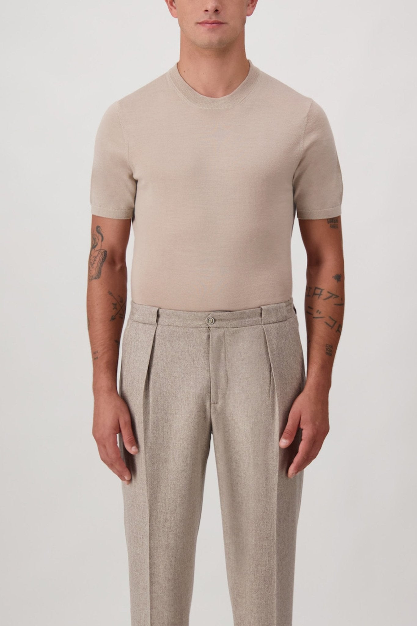 Pantalone a vita media con tasche laterali oblique e tasche posteriori a filetto. Il modello è alto 188 cm e indossa la taglia 50.