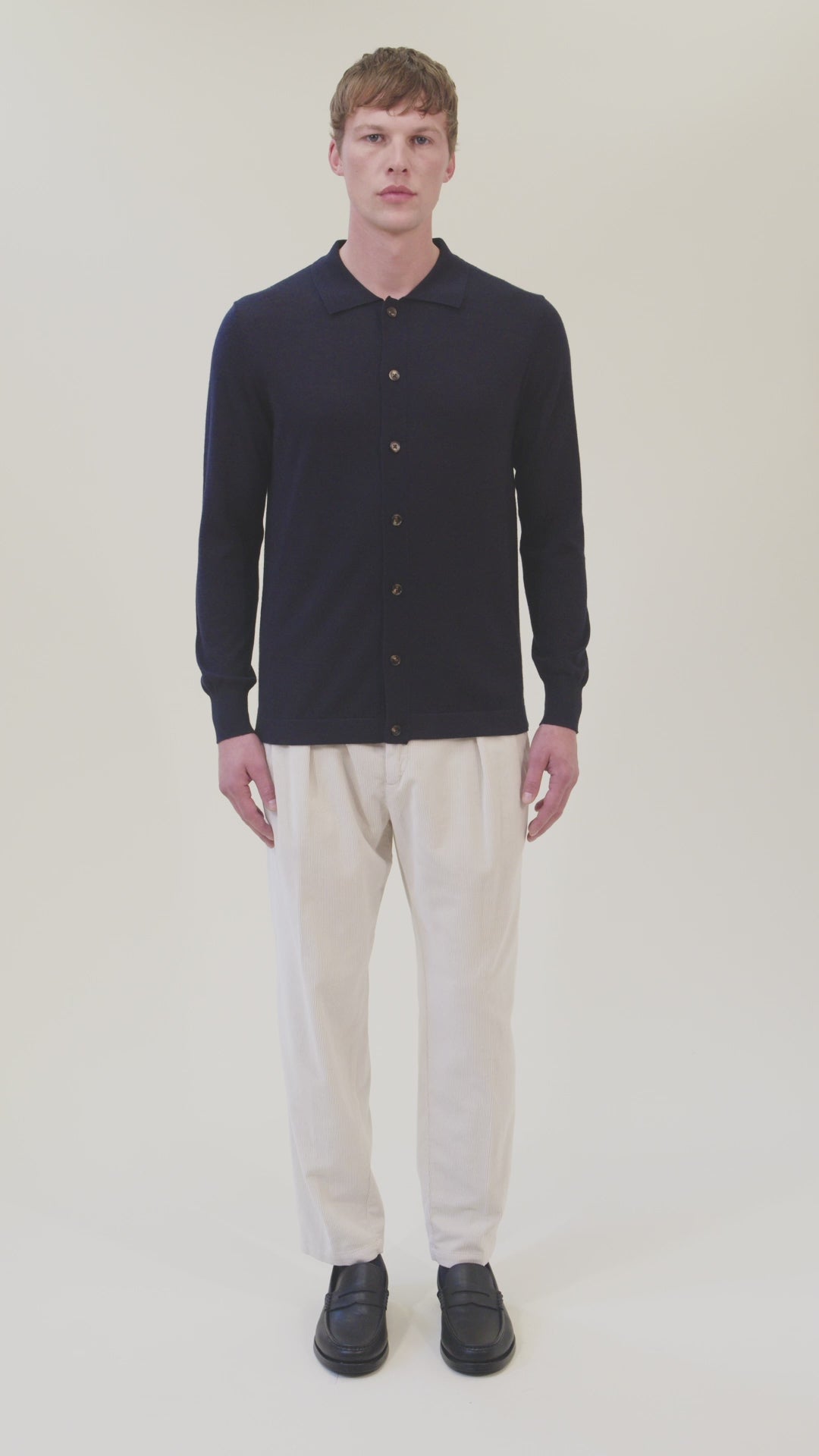 Exquisitely tailored corduroy trousers featuring elegant front pleats and subtle elastic side panels that enhance the fit without compromising elegance. A refined zip closure and classic slant pockets complete the look for maximum practicality.