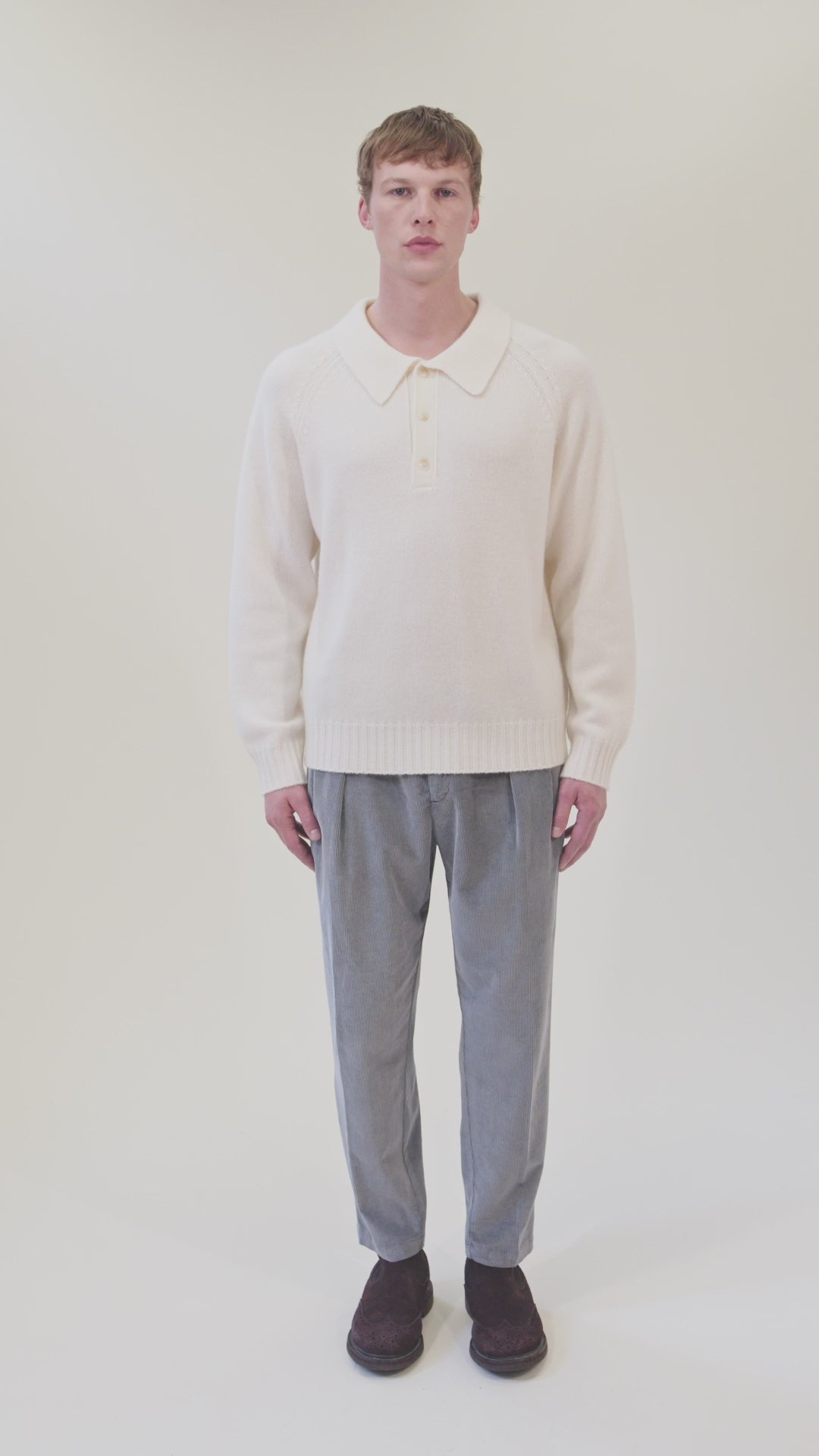 Plain polo shirt with raglan shoulders and three-button placket. 5 gauge - 3 ply.