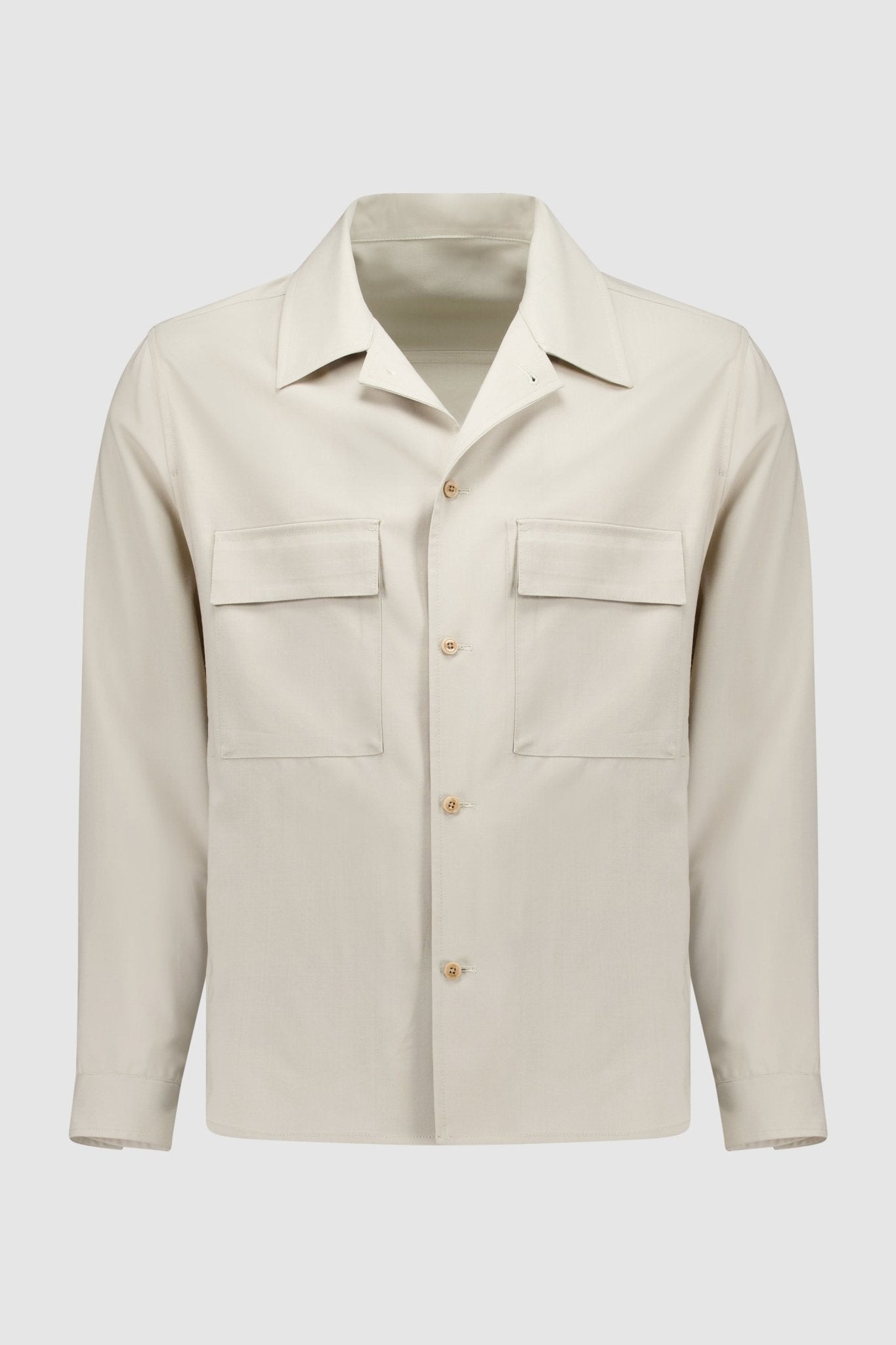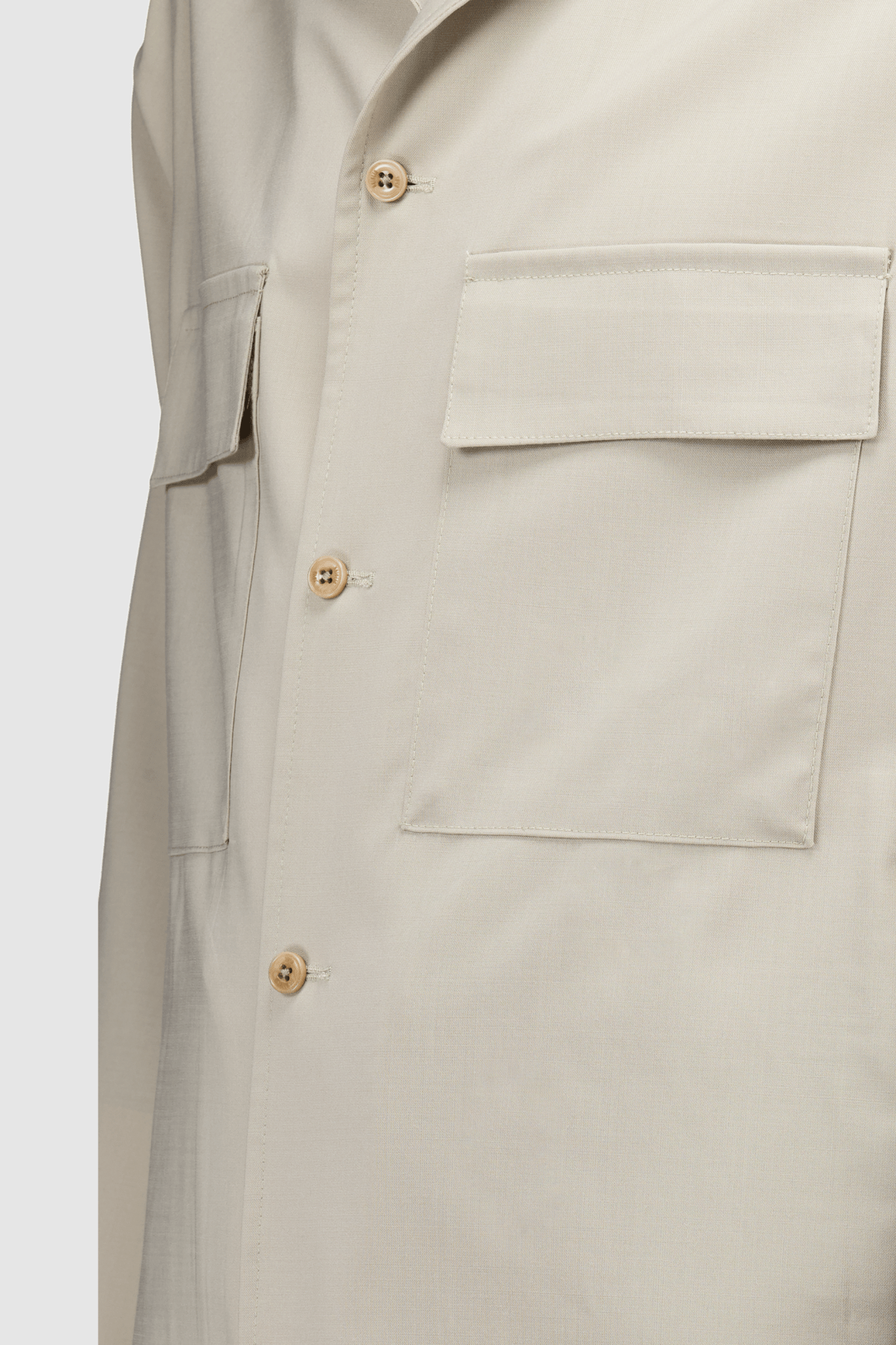 Overshirt with six buttons and two patch pockets. The model is 188 cm tall and wears a size 50.