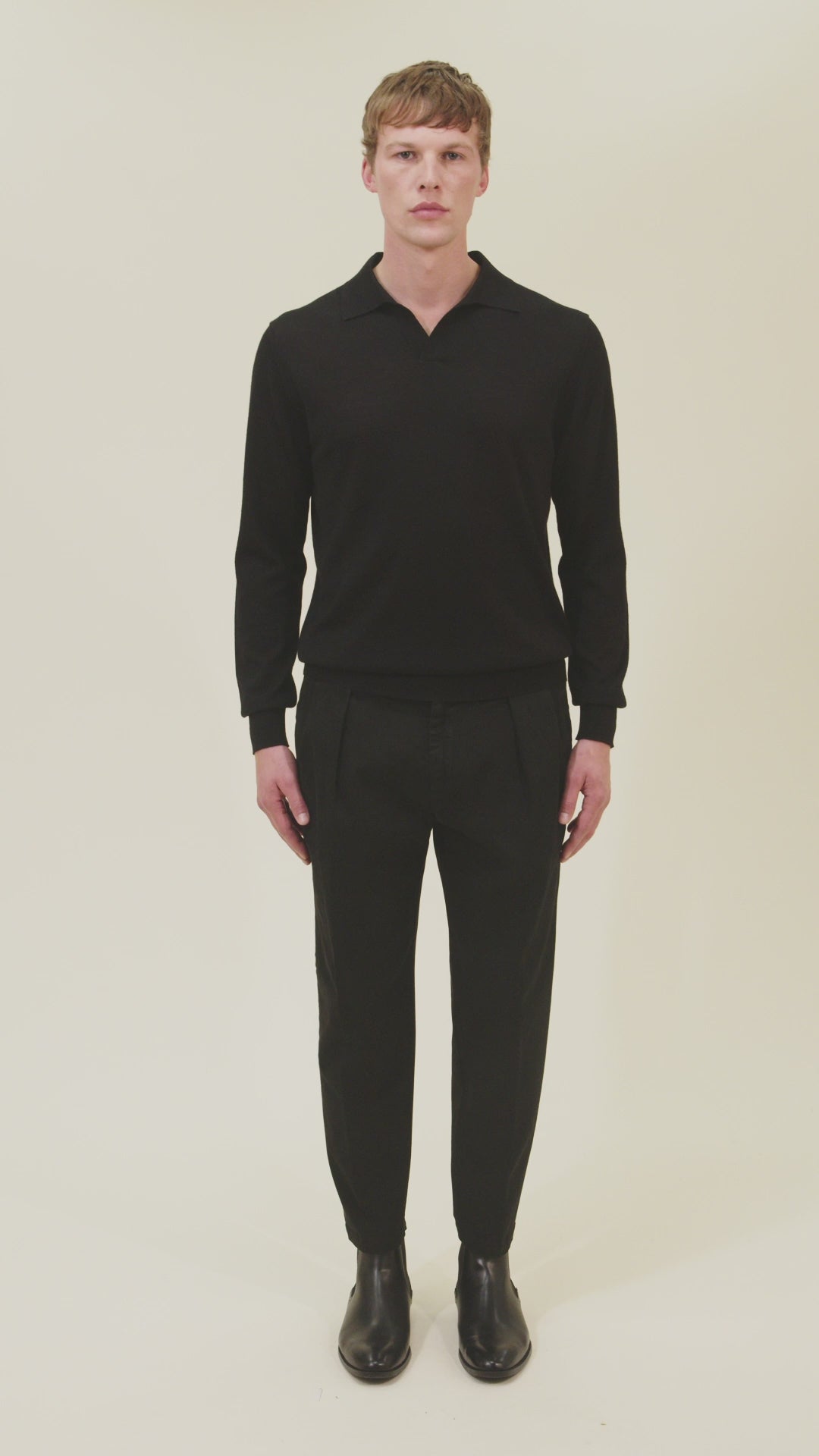 Long-sleeved plain polo shirt. Gauge 16.
